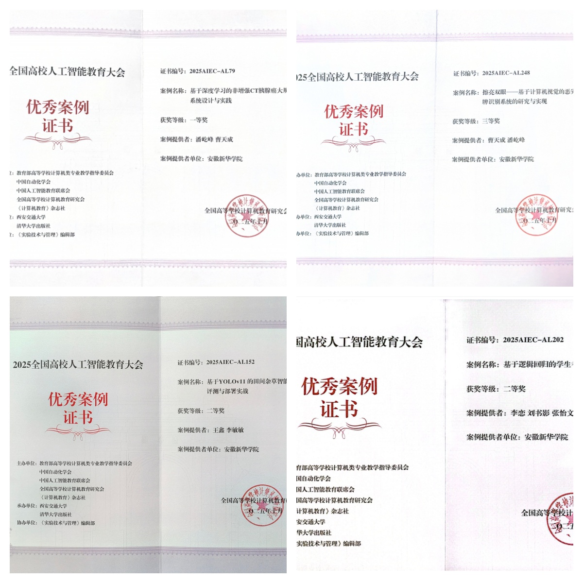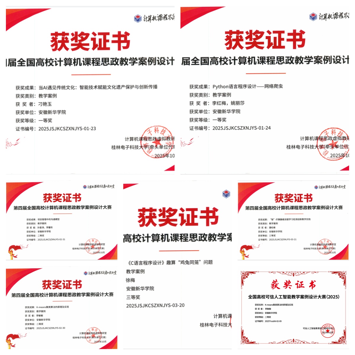 本网讯(通讯员:曹天成)近日,安徽新华学院大数据与人工智能学院在多项全国性计算机类教学与思政案例评选中表现突出,展现了学院在计算机专业教育领域的扎实积累与创新实力。