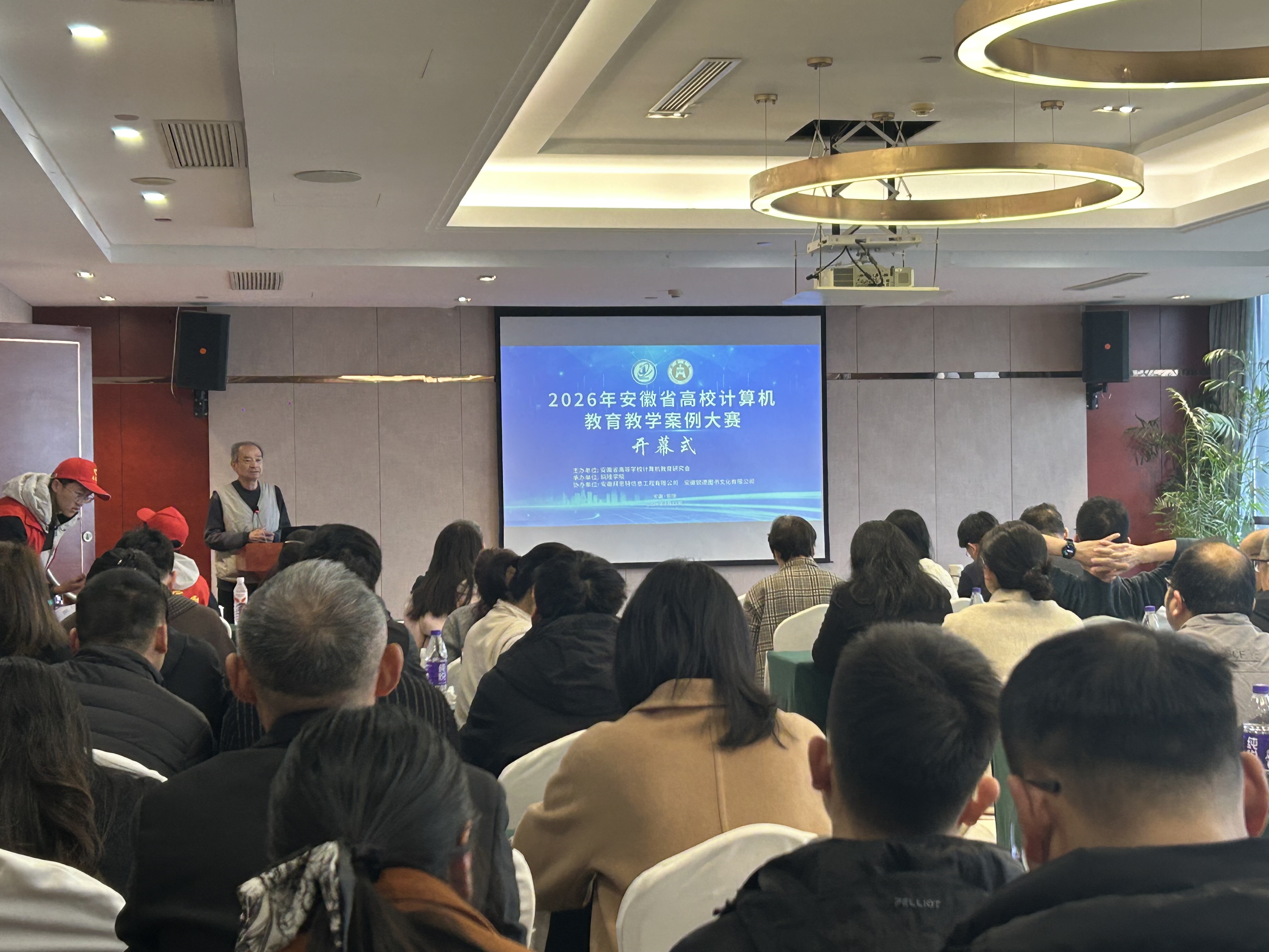 大赛开幕式上,安徽省高等学校计算机教育研究会理事长胡学钢致开幕词,对大赛的顺利举办表示祝贺,对铜陵学院的精心承办表示感谢,强调大赛是推动计算机教育创新、促进校际交流合作的重要载体,希望全体参赛人员以赛促教、以赛促改。铜陵学院教务处处长代表承办单位致辞,对各位参赛人员、专家评委的到来表示热烈欢迎,并介绍了赛事筹备情况,承诺做好各项保障工作。裁判长就竞赛规则、评分标准进行了详细说明,确保评审工作公平、公正、公开。
