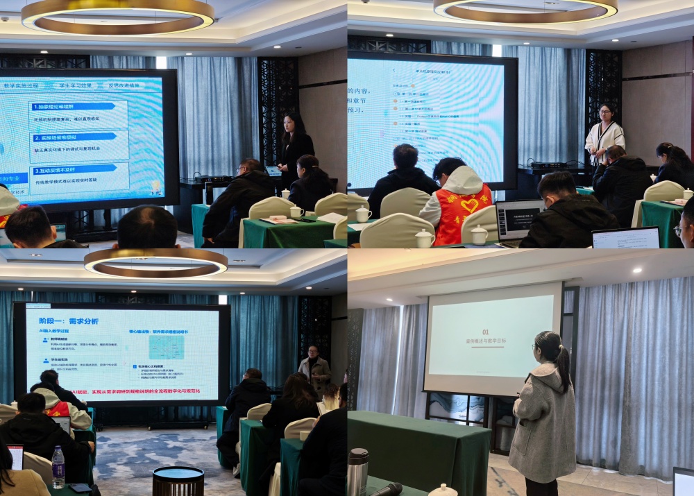 决赛现场,我校参赛教师精神饱满、沉着自信,在案例汇报环节,清晰阐述了案例的设计思路、教学实施过程、实践应用成效及创新亮点,结合我校在AI赋能课程教学、校企协同育人等方面的实践经验,展现了扎实的专业素养、严谨的教学态度和创新的育人理念;在互动答辩环节,从容应对评委提问,深入交流教学心得,得到了评委专家的关注与认可。