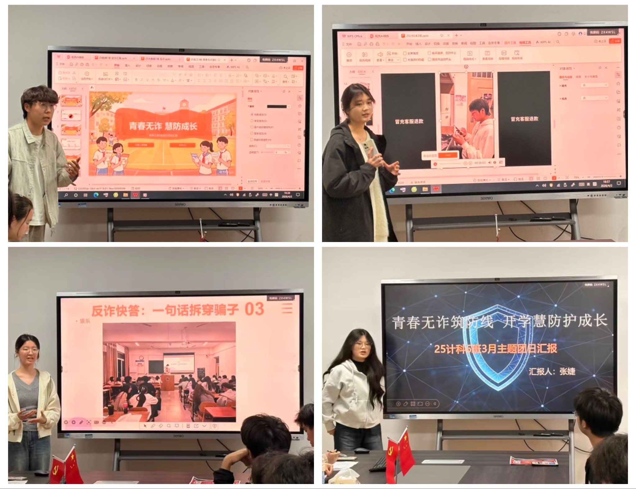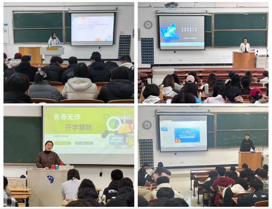 此外,学院组织辅导员开展防范电信诈骗主题班会,实现学生全覆盖。班会结合真实案例进行讲解,重点强调日常生活中的风险识别与防范措施,引导学生树立正确的安全观念,筑牢思想防线。