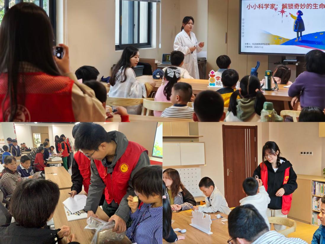 本网讯(通讯员:尹路 张韬)为践行志愿服务精神,助力青少年科学启蒙,安徽新华学院大数据与人工智能学院团总支“e路星火”志愿服务团的10余名青年志愿者,于2025年11月2日走进蜀南庭苑,联合蜀麓党群服务中心开展“小小科学家:解锁奇妙的生命密码”科普志愿活动,以青春之力为社区亲子科普时光注入知识温度。